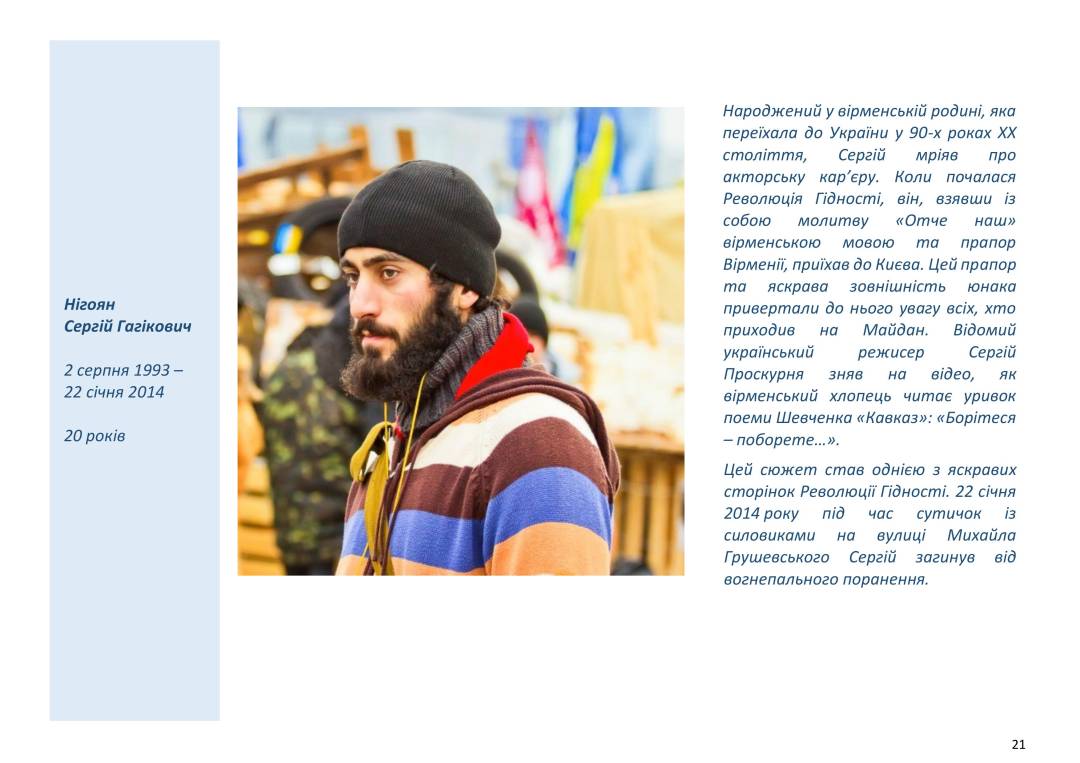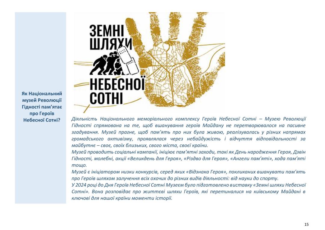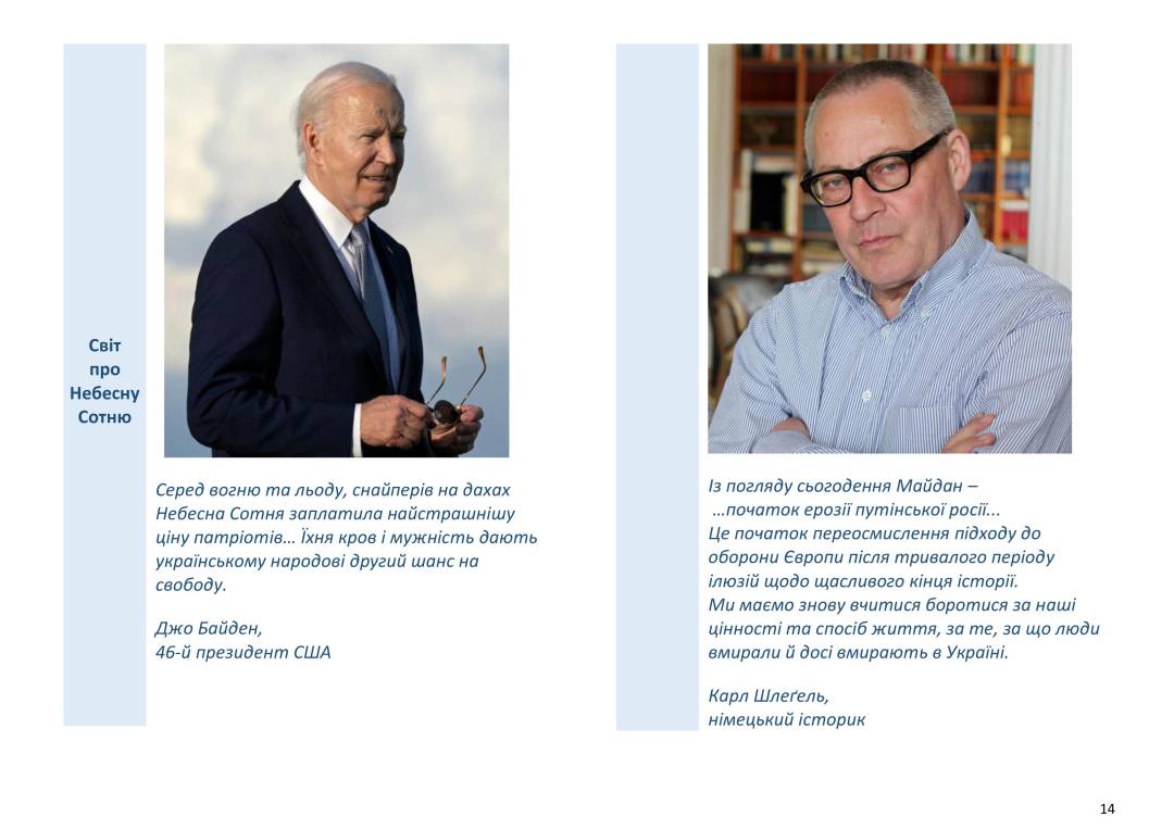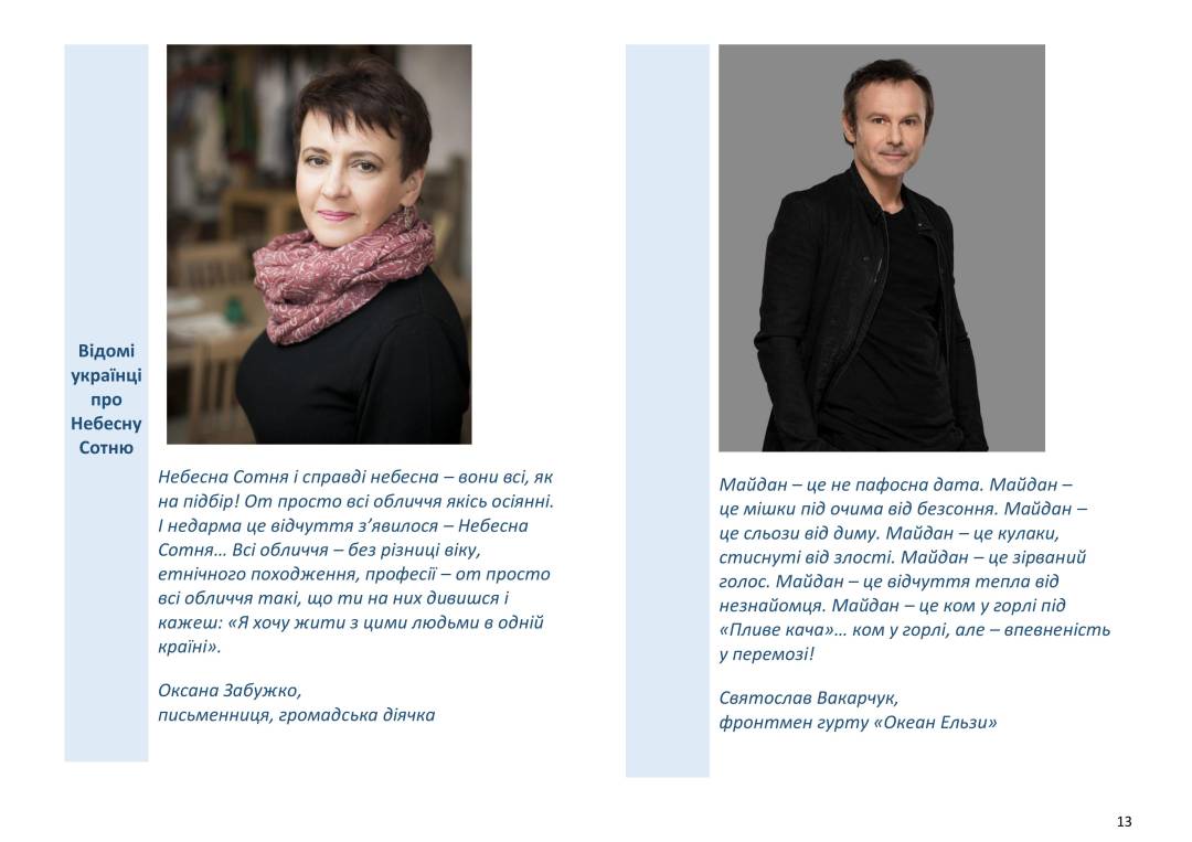 Високу ціну платить наша країна за право бути суб’єктом на карті світу та мати власні суверенітет і державність. Одними з перших, які рішуче виступили на захист нашої Батьківщини, були Герої Небесної Сотні. Вони стали символом світла та перемоги над злом. Разом із героями теперішньої Війни за Незалежність України, які відстоюють на фронті наше право жити у вільній соборній Україні, вони живлять та зміцнюють нашу віру в Перемогу.