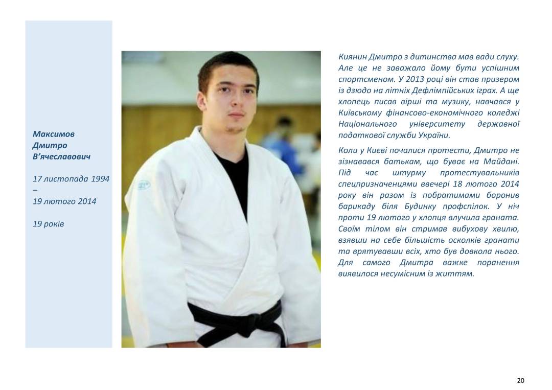 20 лютого 2014 року в середмісті столиці України загинула найбільша кількість осіб — 48. Їх разом з іншими 54 загиблими та смертельно пораненими учасниками мирних протестів упродовж зими 2013–2014 років і п’ятьма активістами Майдану, які загинули навесні 2014 року, обстоюючи демократичні цінності та територіальну цілісність України, назвали Героями Небесної Сотні.