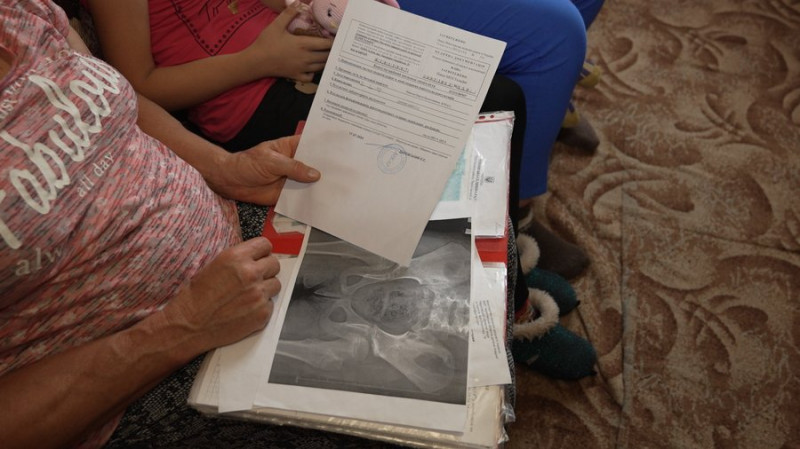 "Дочка була на реабілітації з онучком і з нею. Зробили повторний знімок тазостегнових суглобів. І на знімку показало, що в нас вже погіршення. Я ніколи в житті не думала, що таке буде з нею".
