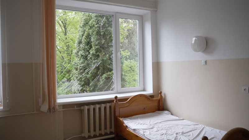 Вибите вікно в одному з відділень Чернігівської районної лікарні після російського ракетного удару 17 квітня 2024 року Суспільне Чернігів