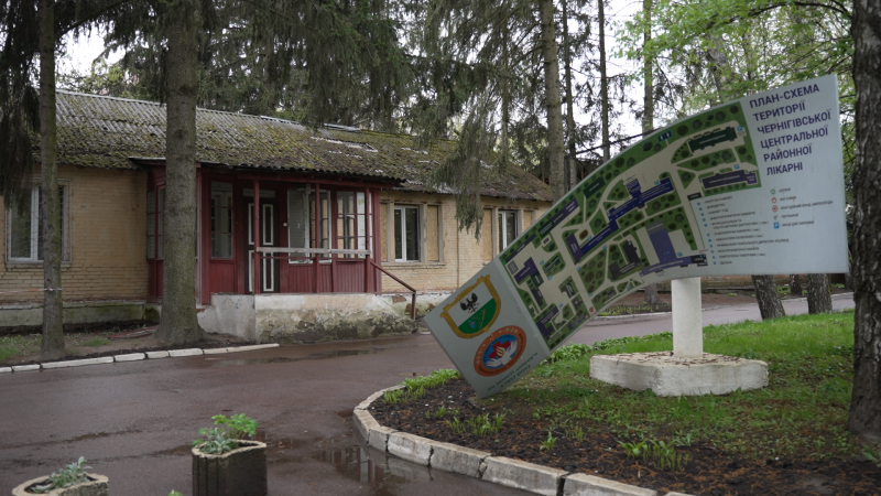 До районної лікарні журналісти Суспільного приїхали 14 квітня. Того дня Чернігів вкотре атакували російські безпілотники. Поцілили вони тоді в адміністративну будівлю у центральній частині міста. Біля "районки", саме так лікарню називають місцеві, вибухи також чули.