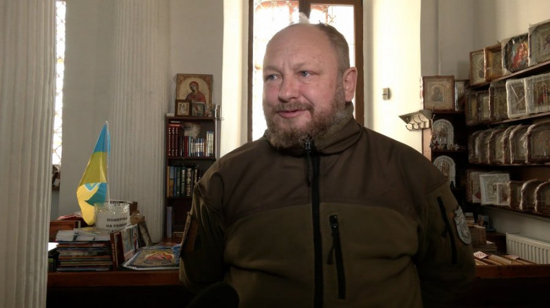 Настоятель Кафедрального собору Сергій Чечин говорить: бійці завжди радо приймають подарунки від дітей, особливо малюнки.