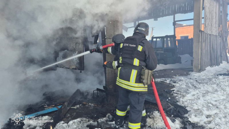 Внаслідок падіння російського БпЛА на Чернігівщині сталася пожежа в ангарі приватного підприємства