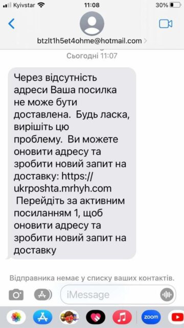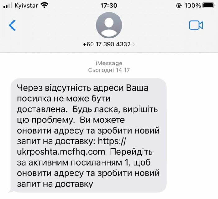 «Так, це шахраї. Після того, як ви переходите за посиланням, із вас вимагають 18 гривень за послугу переадресації та крадуть номер вашої картки. На жаль, смс приходять по всій території нашої країни. Генеральний директор Ігор Смілянський також повідомляв про цей факт. Тому насамперед ігноруйте такі повідомлення та не переходьте за посиланням. Обов’язково розкажіть про таку схему своїм друзям і родичам, особливо людям похилого віку. По друге: в наших посиланнях ніколи немає таких незрозумілих літер, на кшталт https://ukrposhta.zsjfrz.com/ (це один із заблокованих шахрайських сайтів) і ми завжди Ukrposhta.UA, а не Ukrposhta.com. Будьте уважними та ніколи не довіряйте свої дані підозрілим сайтам і дзвінкам. Якщо є сумніви, звертайтеся до нашого контакт-центру за номером 0800-300-545», – застерігає Олександр Бородавко.