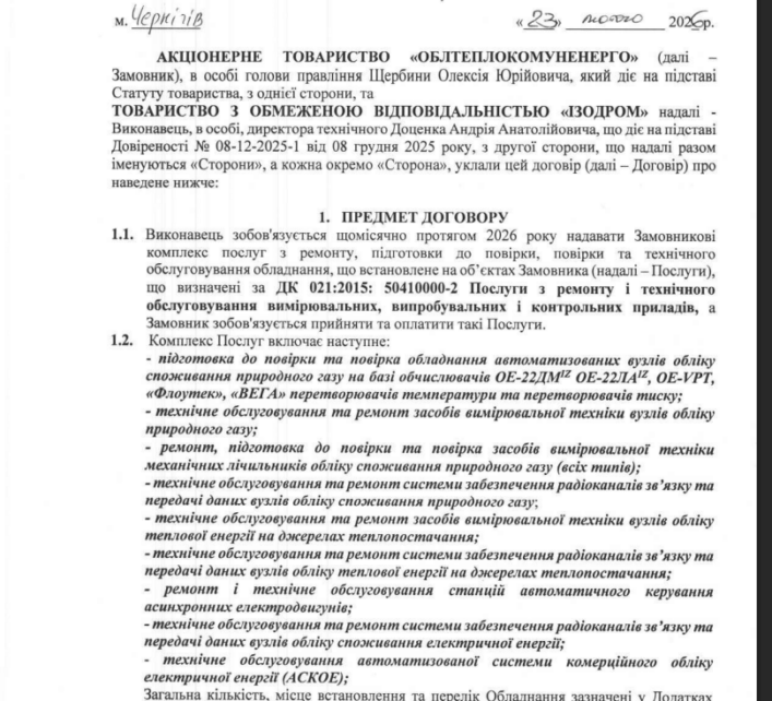 На порталі публічних закупівель Рrozorro є оголошення про закупівлю АТ «Облтеплокомуненерго» комплексу послуг із ремонту, підготовки до повірки, повірки та технічного обслуговування обладнання на суму 12 828 000 грн.