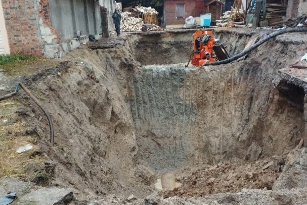 «Враховуючи те що колектор знаходиться в обмеженому будівлями просторі, а через дощову погоду стінки розкопки постійно обвалюються, як тимчасове рішення, зруйновану ділянку було накрито частиною труби.