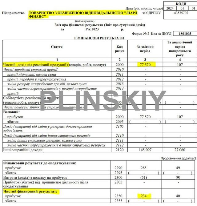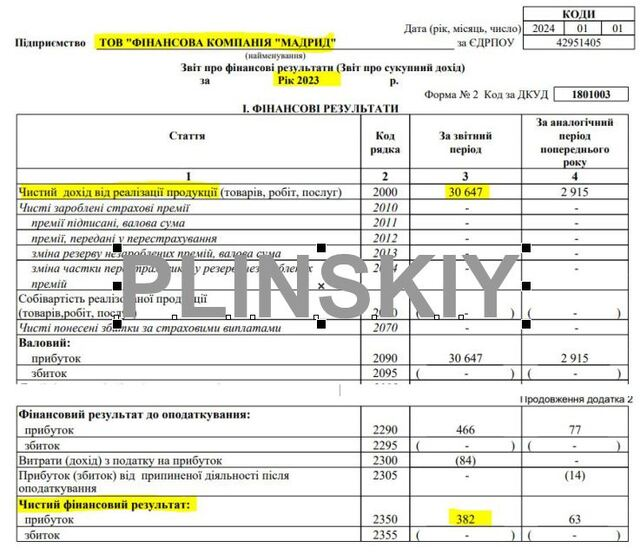 Чи могли фінансові компанії дозволити собі таку покупку? Офіційні дані говорять, що ні. У 2023 році чистий прибуток «ФК «Мадрид» склав всього 382 тис. грн, а «Ліард Фінанс» — 234 тис. грн. У 2022 році показники були ще гірші: 63 тис. грн і 40 тис. грн відповідно.