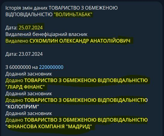 За реєстраційними даними, з 25 липня власниками «Волиньтабак» стали: