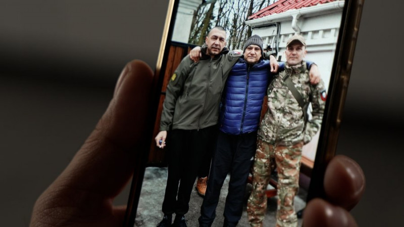 Військові Микола Курок та Іван Роман, які повернулися з російського полоні, і батько Івана. Суспільне Чернігів