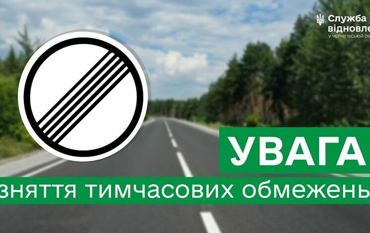 Служба відновлення повідомляє, що з 16:00 9 червня 2023 року на автомобільній дорозі загального користування державного значення М-01 Київ – Чернігів – Нові Яриловичі відновлюється рух транспорту через міст в обох напрямках на км 161+113 після проведених ремонтних робіт.