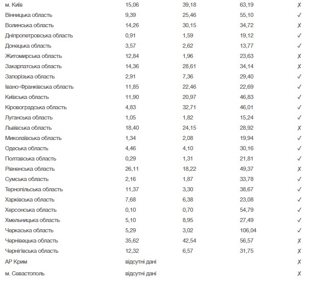 У всіх вищезазначених регіонах ослаблення карантинних обмежень неможливо через занадто велике число нових випадків COVID-19 за останні 7 днів.