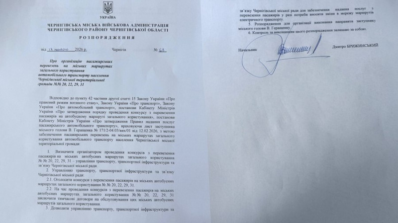 Розпорядження начальника МВА — це відповідь на лист від міської ради, в якому йшлося, що 10 лютого до управління надійшов лист від ТОВ "Епітранс", у якому перевізник повідомив про намір розірвати в односторонньому порядку договір та припинити обслуговування автобусних маршрутів Nº 20, 22, 29, 31 з 1 березня 2026 року.