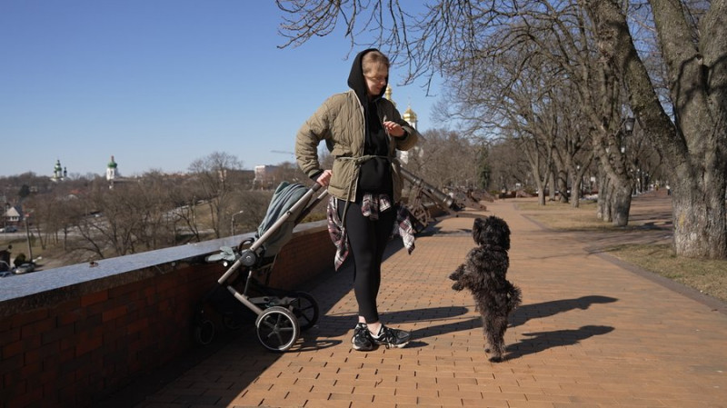 Чернігівка вигулює свою собаку. Суспільне Чернігів