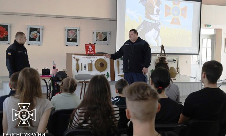 Рятувальники разом із хвостатим помічником провели безпековий захід і нагадали дітям про правила протимінної безпеки, про те, що сьогодні натрапити на небезпечну знахідку можна практично скрізь.