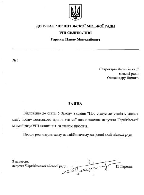На найближчому засіданні сесії Чернігівської міської ради (1 листопада 2023 року) депутати розглянуть питання позбавлення депутатського мандату Павла Гармаша.