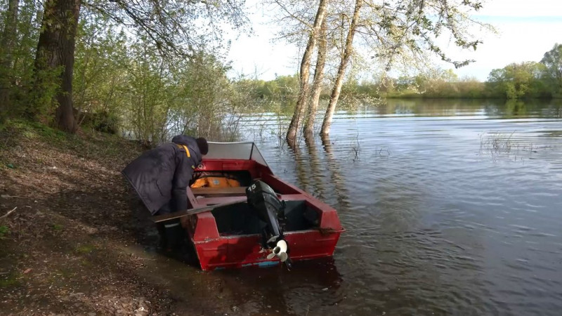 Людина біля човна на річці на Чернігівщині у квітні 2024 року. Суспільне Чернігів