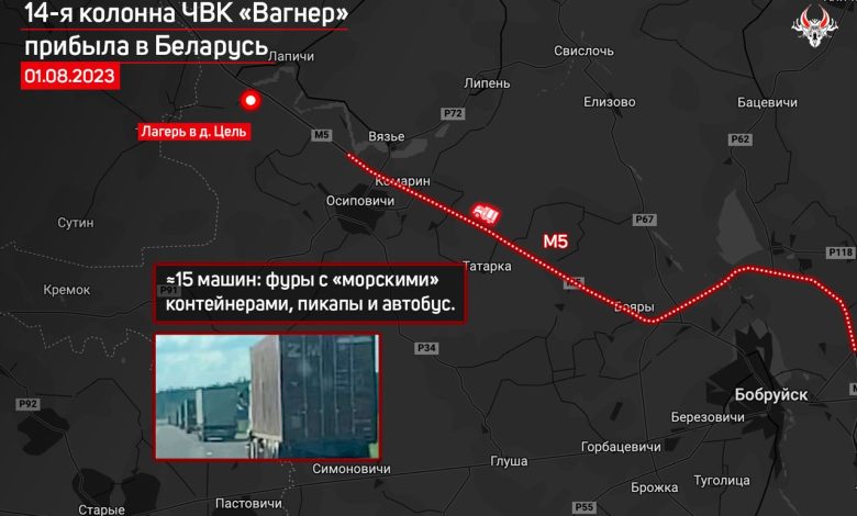 14-та колона найманців Пригожина через трасу М5 прибула на білоруську територію до табору в с. Ціль.