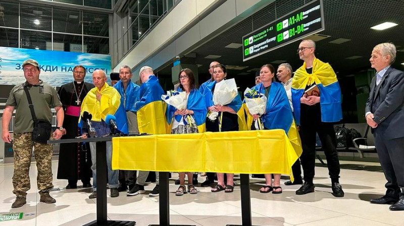 Людмила Гончаренко та інші громадяни України, яких повернули з білоруських в’язниць. Координаційний штаб з питань поводження з військовополоненими