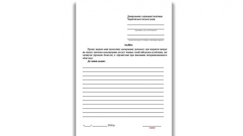 Зразок заяви. ФОТО: Пресслужба Чернігівської міськради