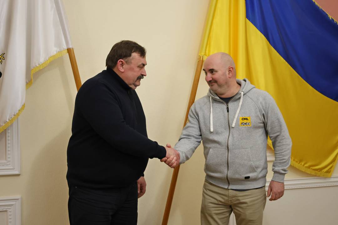 Заступник міського голови Віктор Геращенко від імені громади міста Чернігова висловлює вдячність міжнародним партнерам за підтримку, особливо враховуючи складні умови воєнного часу та втрати комунальної техніки через обстріли у 2022 році: