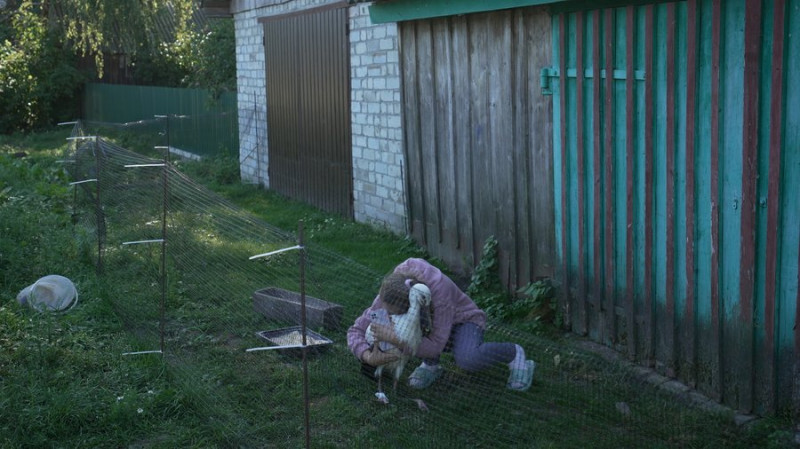 Внучка Тетяни Кирик прощається з лелекою Гошею. Суспільне Чернігів