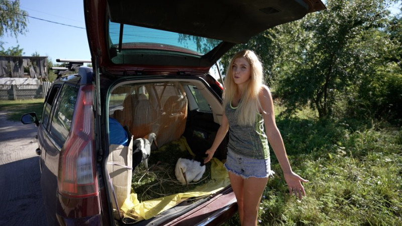 Гошу й ще одного лелеку, який також був травмований, забирає волонтерка Олена Прокоп’єва. Вже обох птахів разом везе в Менський зоопарк.