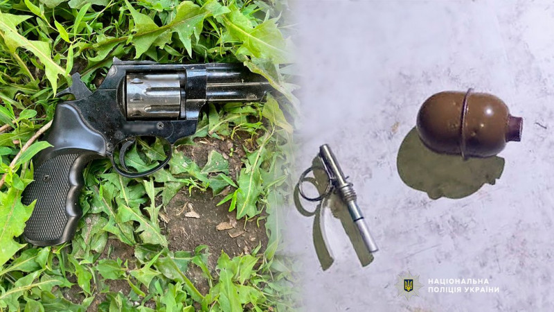 Під час проведення обшуку в оселі обвинуваченого поліцейські виявили та вилучили пістолет, гранату РГД-5 із запалом до неї.