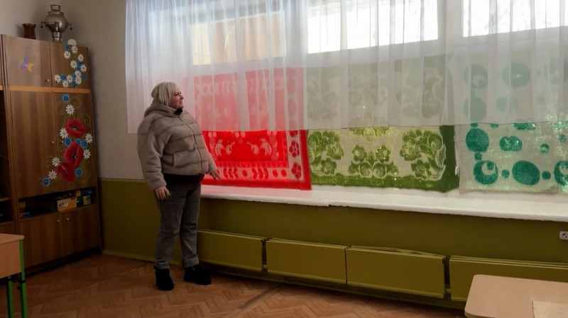 Завішені ковдрами вікна в НВК «Дзвіночок» у Новгороді-Сіверському. Суспільне Чернігів