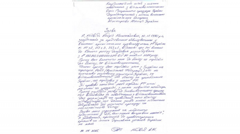 Заява, яку написав Андрій Медвідь на обмін до Росії. Проєкт «Хочу к своим»