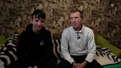 Анатолій Прохоренко разом із батьком Володимиром Полторацьким. Суспільне Чернігів"Я вже майже нічого не боюсь. Так, страх «шахеда» ще є. Але поживши в Семенівці, коли воно літало над головою, то не страшно".
