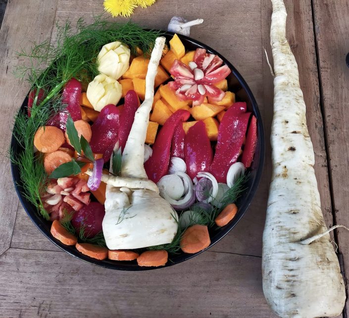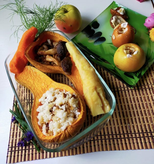 Зважаючи на те, що пані Марія не марнувала літо на розваги, то виростила на городі достатньо овочів і фруктів. Особливо їй смакують гарбуз, пастернак і морква. Господиня каже, що з них можна приготувати безліч смачних і корисних страв. Як, наприклад, суп із гарбуза, заправлений грибами та пісним майонезом, перці фаршировані гречаною та рисовою крупами з грибами й інші смаколики.