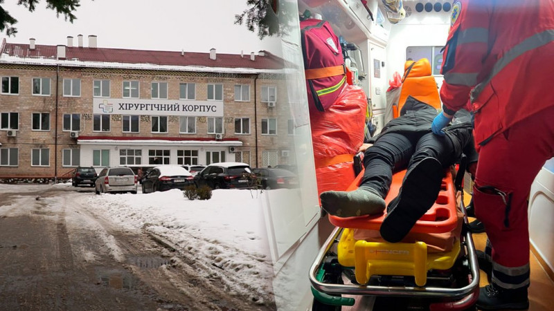 За інформацією: Суспільне Чернігів. Колаж, на якому зображена Чернігівська обласна лікарня, медики та жінка, яку збили. Суспільне Чернігів / Патрульна...