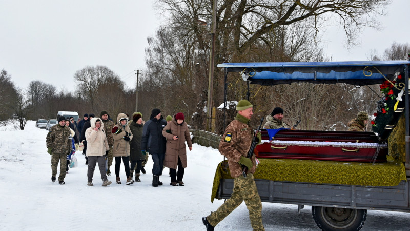 Прощання із захисником України Юрієм Харченком у селі Краснопілля Коропської громади. 8 лютого 2026 рік. Facebook/Коропська селищна рада