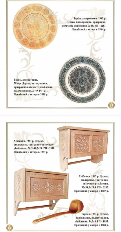 Ще в 70-х рр. ХХ ст. відтворив Чернігово-Сіверське різьблення, характерною ознакою якого є тригранно-виїмчастий візерунок.