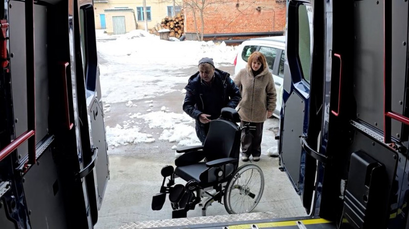 Медична сестра допомагає маломобільній Ользі Воробей. Суспільне Чернігів"Медична сестра чекає, супроводжує, у лікарні з підопічним постійно. Якщо б людина сама поїхала, то їй треба самій це все і вирішувати. А у нас медична сестра їде і водій, допомагають, підіймають, на колясочці возять. Якщо таксі приїхало і поїхало, то ми чекаємо на людину, забираємо її назад", — розповідає Тетяна Сіра.