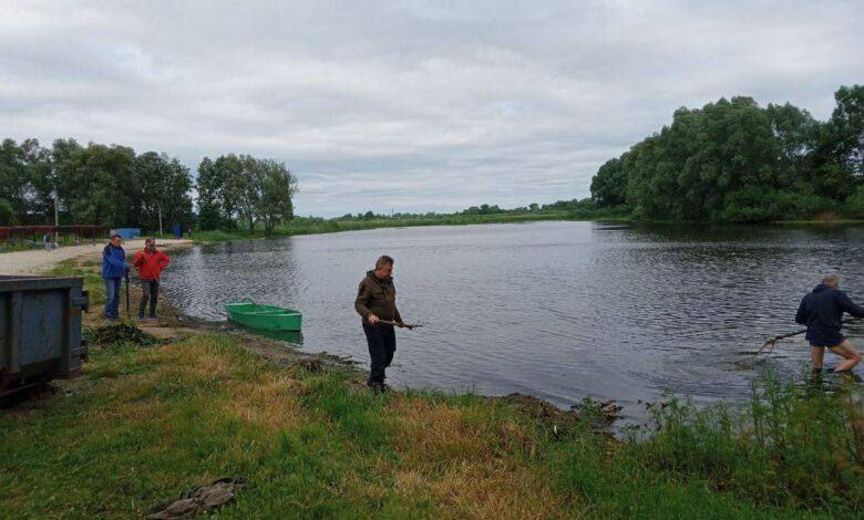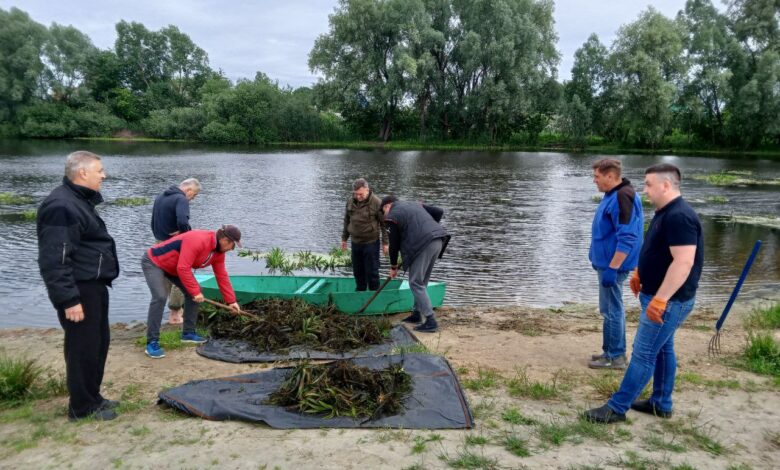 Попри прохолодну погоду, працівники міської ради займалися благоустроєм прилеглої території та самої водойми. Зокрема, прибрали сміття, скосили траву, очистили від чагарників прилеглу територію та річку.