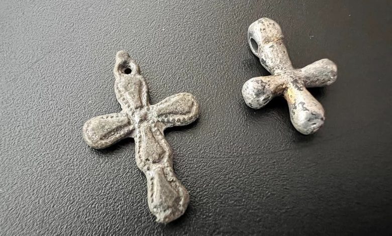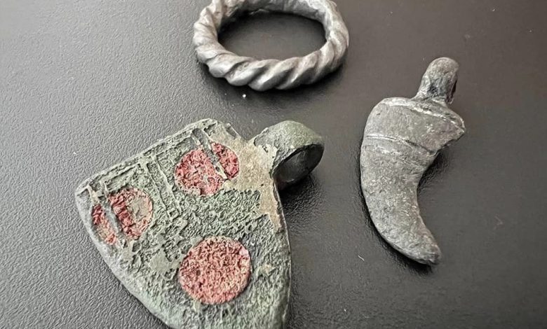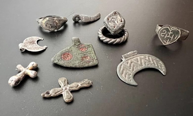 • срібний хрестик, бронзовий перстень домонгольського часу та посріблений язичницький амулет у вигляді ікла, часів Русі, ХІ-ХІІІ ст.,