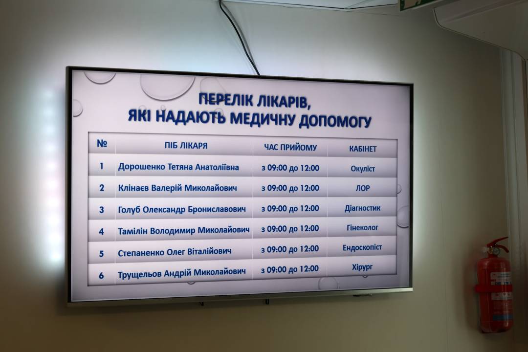Усі кабінети укомплектовані сучасним медичним обладнанням та меблями, а також є своя лабораторія. У лікарні надаватимуться послуги функціональної діагностики (ЕКГ, ЕЕГ, ультразвукове дослідження тощо) і працюватиме терапевт, лор, офтальмолог, гінеколог, хірург та інші спеціалісти.