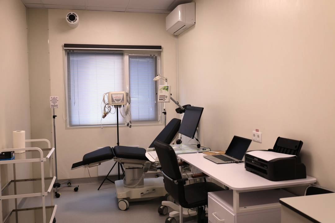 Модульна лікарня площею 600 м2 повністю автономна — оснащена сонячними батареями та генератором. Підключена до систем водопостачання та водовідведення.