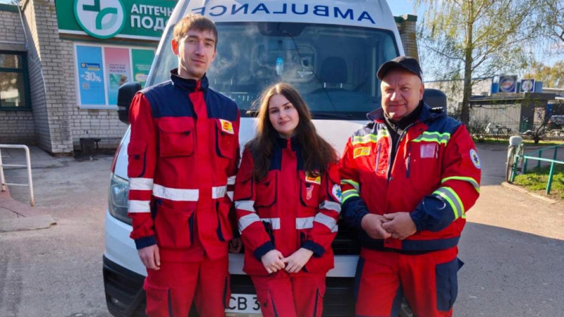 "Парамедики Альона Волик та Сергій Волик, екстрений медичний технік Сергій Данкевич прибули на місце та одразу ухвалила рішення про госпіталізацію до пологового відділення. Під час транспортування, щойно виїхали за межі населеного пункту, у жінки почалися потуги. Ситуація вимагала негайних дій".
