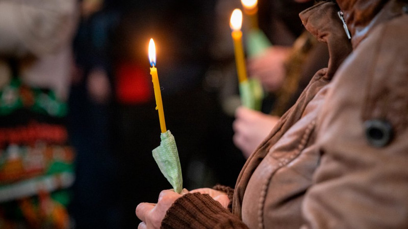 Люди зі свічками під час поховання. Суспільне Чернігів (архів 16 жовтня 2025 року)