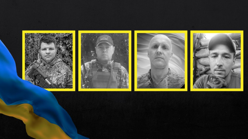 Бійці, з якими попрощалися на Чернігівщині 15 квітня 2026 року: Дмитро Баранов, Сергій Луценко, Юрій Товстоп’ят, Михайло Смеря. Сухополов’янська громада / Талалаївська сільська територіальна громада / Сосницька громада / Наталія Сила