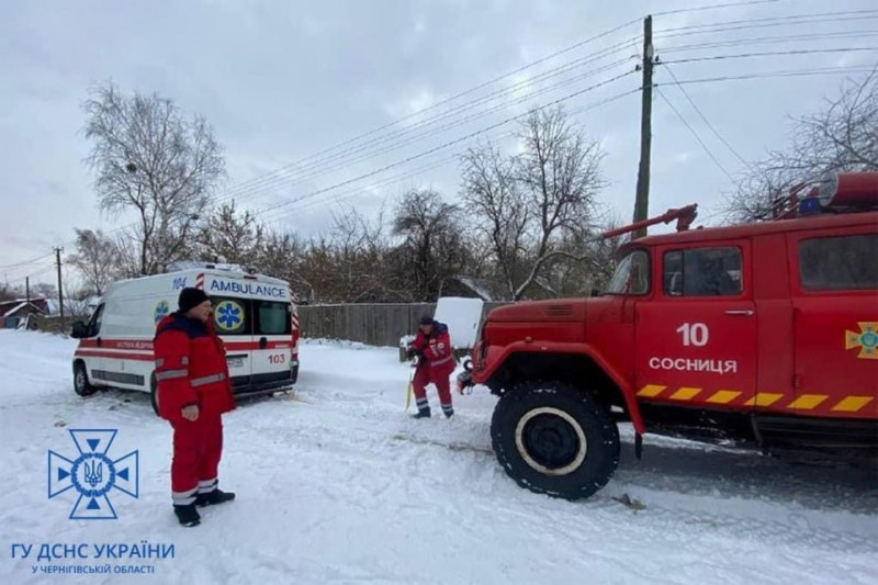 Зокрема, у с. Кудрівка Сосницької територіальної громади Корюківського району рятувальники визволили зі снігового замету карету швидкої допомоги, яка їхала на виклик.
