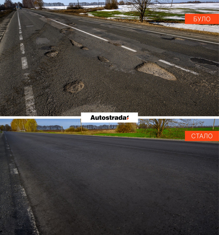 На Чернігівщині дорожні бригади Autostrada завершили ремонт найбільш пошкоджених ділянок траси М-02 від Вертіївки до повороту на Бахмач (км 49+050 – км 114+980).