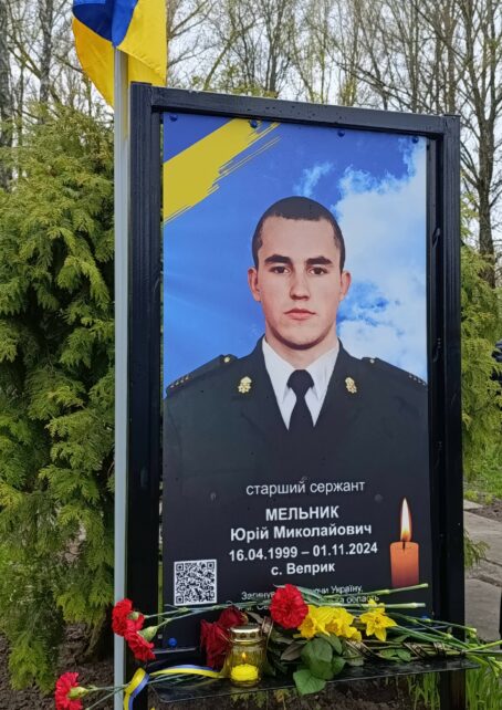 16 квітня у селі Веприк встановили портрет 25-річному старшому сержанту, воїну Юрію Мельнику, який загинув 1 листопада 2024 року поблизу Селидового на Донеччині.