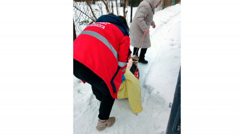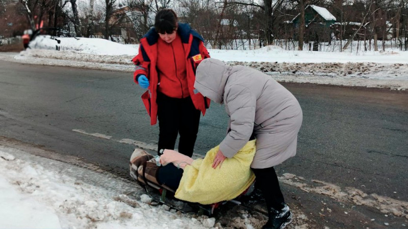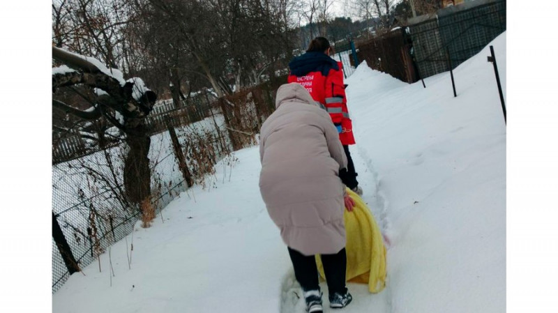 "На допомогу виїхала бригада Чернігівської станції Е(Ш)МД: парамедикині Тетяна Наливайко та Людмила Шеремет, екстрений медичний технік Юрій Шкамарда. При огляді бригада екстреної медичної допомоги виявила у пацієнтки ознаки набряку легень. Медики оперативно надали необхідну допомогу та кисневу підтримку. Через складні погодні умови пацієнтку доправили до траси на санчатах", — пишуть медики.