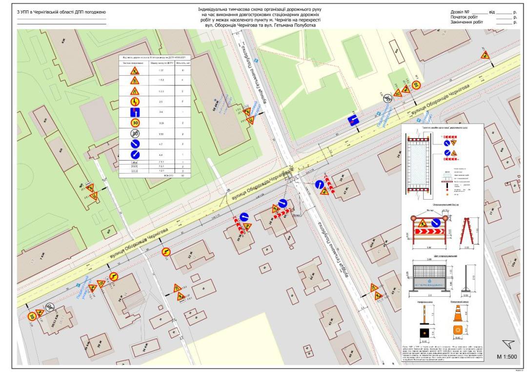 З 09:00 10 лютого 2026 року до 13:00 13 лютого 2026 року у зв’язку з проведенням аварійно-ремонтних робіт на водопроводі діаметром 200 мм по вул. Оборонців Чернігова поблизу перехрестя з вул. Гетьмана Полуботка буде перекрито одну смугу руху в напрямку від «П’яти кутів» до вул. Шевченка.