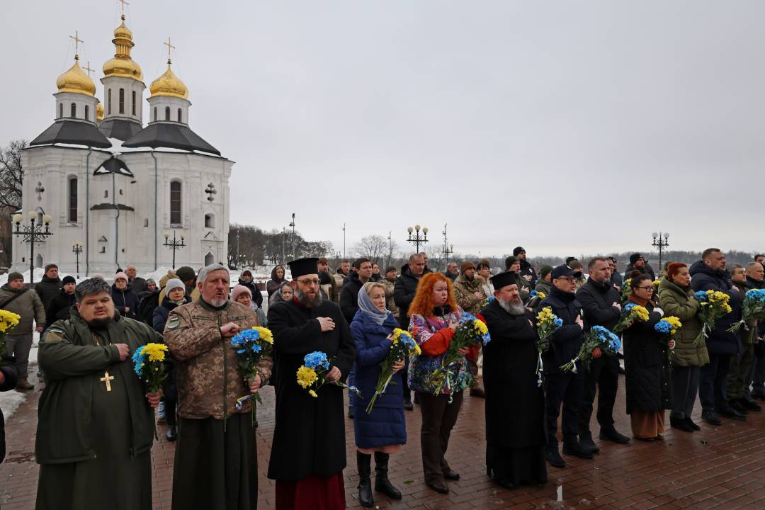 У заході взяли участь представники обласної та міської влади, серед яких заступники Чернігівського міського голови Сергій Фесенко та Вікторія Пекур, військовослужбовці, правоохоронці, священнослужителі, ветерани війни, рідні загиблих воїнів та небайдужі містяни.