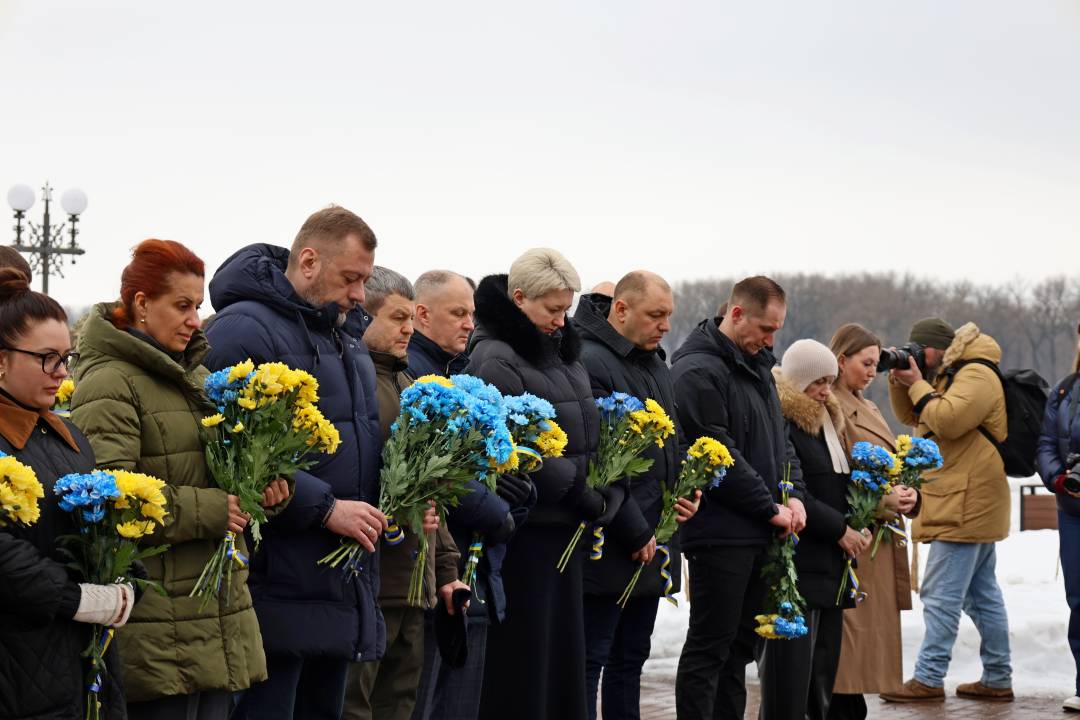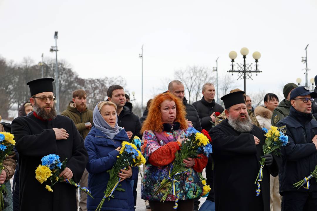 Учасники вшанували хвилиною мовчання полеглих захисників та поклали квіти до пам’ятного знаку. Також сьогодні в Катерининському соборі здійснюється молебень за упокій душ загиблих воїнів та за мир в Україні.