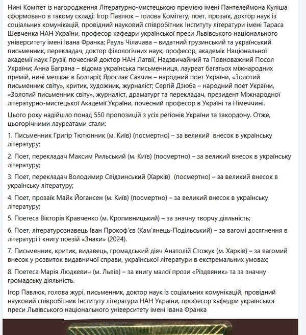 Можливо, це і є нова модель культурної політики: коли нагорода стає універсальним інструментом – і для живих, і для тих, кого давно читають без дипломів.